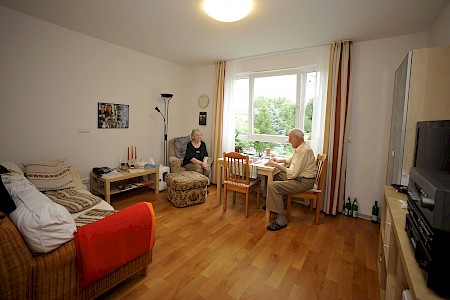 Damit Sie sich bei uns wirklich zuhause fühlen, können Sie Ihr Appartement mit Ihren eigenen Möbeln einrichten. Jedes Appartement hat ein Duschbad mit WC. Zur Grundausstattung gehören: ein seniorengerechtes Bett mit passendem Nachtschränkchen, ein Kleiderschrank und Anschlüsse für Fernsehen und Radio sowie eine Notrufanlage.