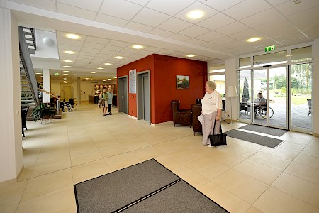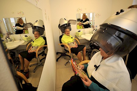 Unsere Einrichtung verfügt über einen Andachtsraum, eine Cafeteria mit Sonnenterrasse und einen Friseursalon. Außerdem befinden sich im Erdgeschoss helle und modern ausgestattete Multifunktionsräume, die wir unseren Bewohnern gern für Feiern im privaten Freundes- und Familienkreis anbieten. Alle Räumlichkeiten im Haus sind barrierefrei erreichbar.